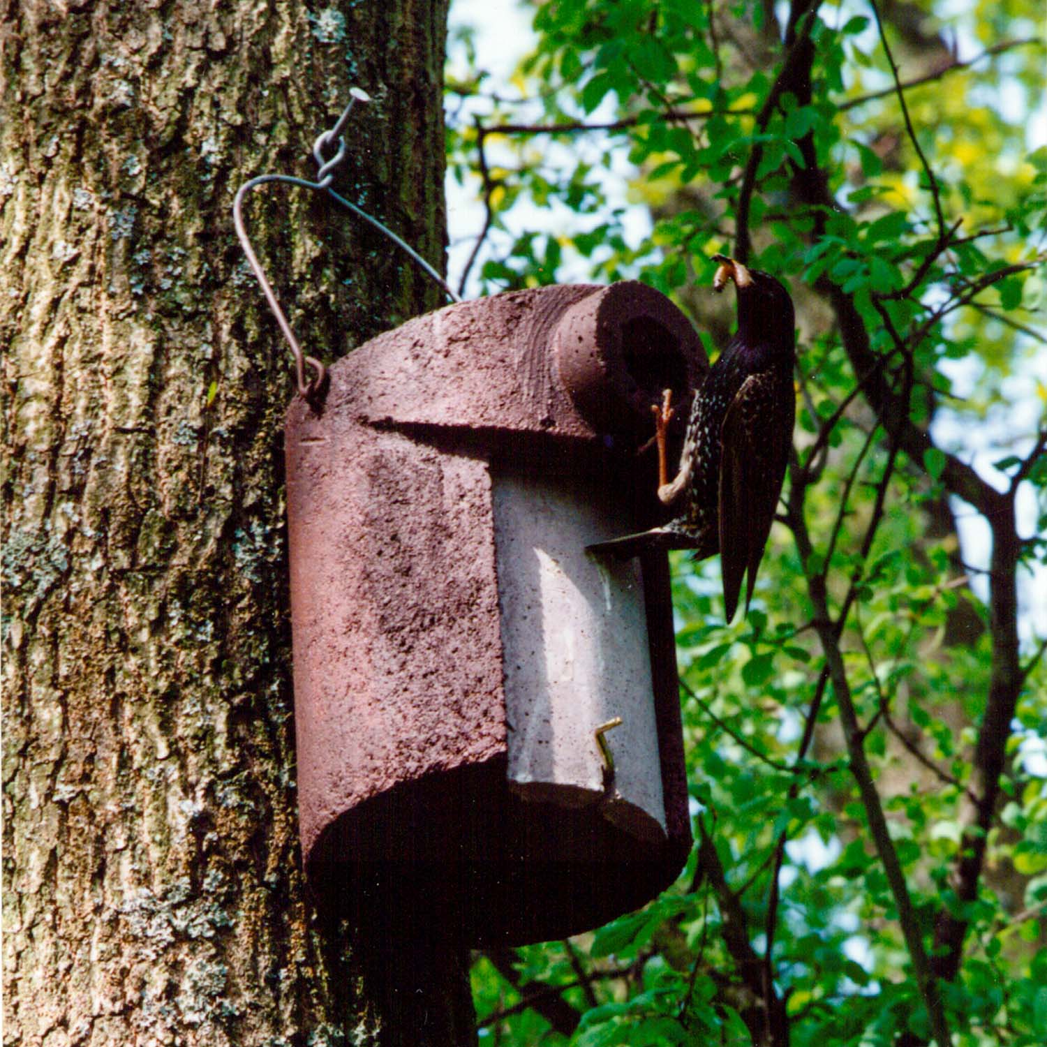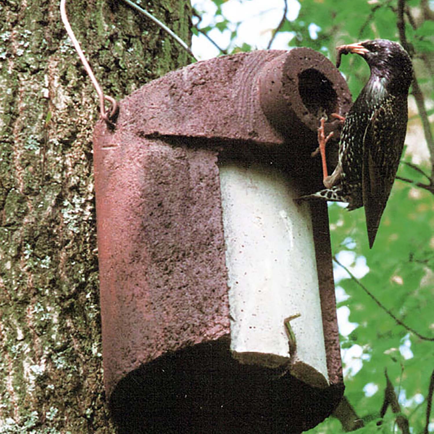 Zwei sehr bewährte Nisthöhlentypen, die Schwegler Starenhöhle 3S und die Schwegler Starenhöhle 3SV mit Katzen- und Marderschutz, können wir Ihnen anbieten. In beiden Höhlentypen finden sich ebenfalls sehr gerne Bunt- und Mittelspechte zum Übernachten ein. Kann bei geringer Starendichte auch durch andere Arten (Trauerschnäpper, Kleiber) belegt werden. Eine Sitzstange unterhalb des Einfluglochs ist ornithologisch nicht erforderlich, als Sitzwarte wird gerne das Dach der Nisthöhle verwendet.