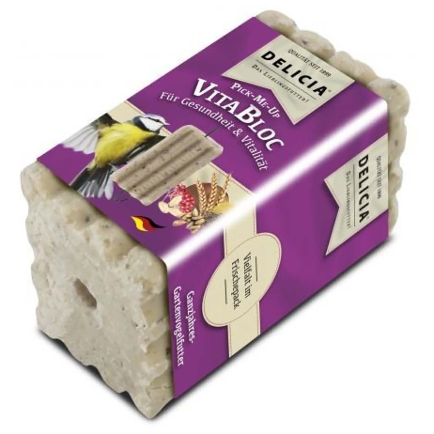 Der neue DELICIA® Pick-Me-Up VitaBloc ist in seiner speziellen Zusammensetzung ein idealer Lieferant wertvoller Vital- und Energiestoffe für Ihre Gartenvögel. Eine gehaltvolle Nahrungsergänzung für alle heimischen Gartenvögel, hergestellt aus hochwertigen Rohstoffen, die für Ihre Gartenvögel äußerst schmackhaft sind.