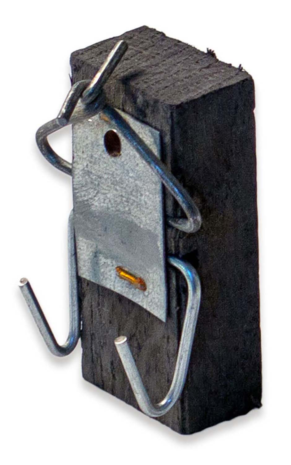 Von Schwegler bieten wir einen speziellen Aufhängeklotz, an dem ein Nistkasten aufgehängt werden kann. Dieser kommt in erster Linie in Park- und Forstanlagen zum Einsatz, in denen die Nistkästen in der Regel relativ hoch hängen. Das Aufhängeklötzchen wird mit einem Alunagel am Baum befestigt und der Nistkasten am Bügel daran aufgehängt. Anschließend kann der Herausfallschutz heruntergeklappt werden, sodass der Kasten nicht mit einem Stab von unten aus der Halterung gedrückt werden kann. Der Vorteil dieses C-Klötzchens ist, dass die Nistkästen mittels einer speziellen Gabelstange vom Boden aus abgenommen und gereinigt werden können, ohne dass eine Leiter benötigt wird.