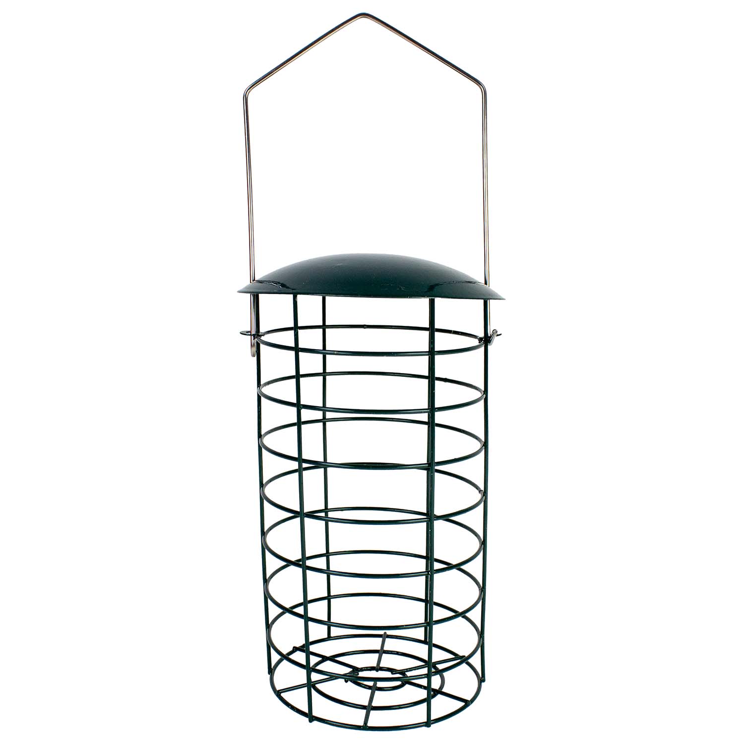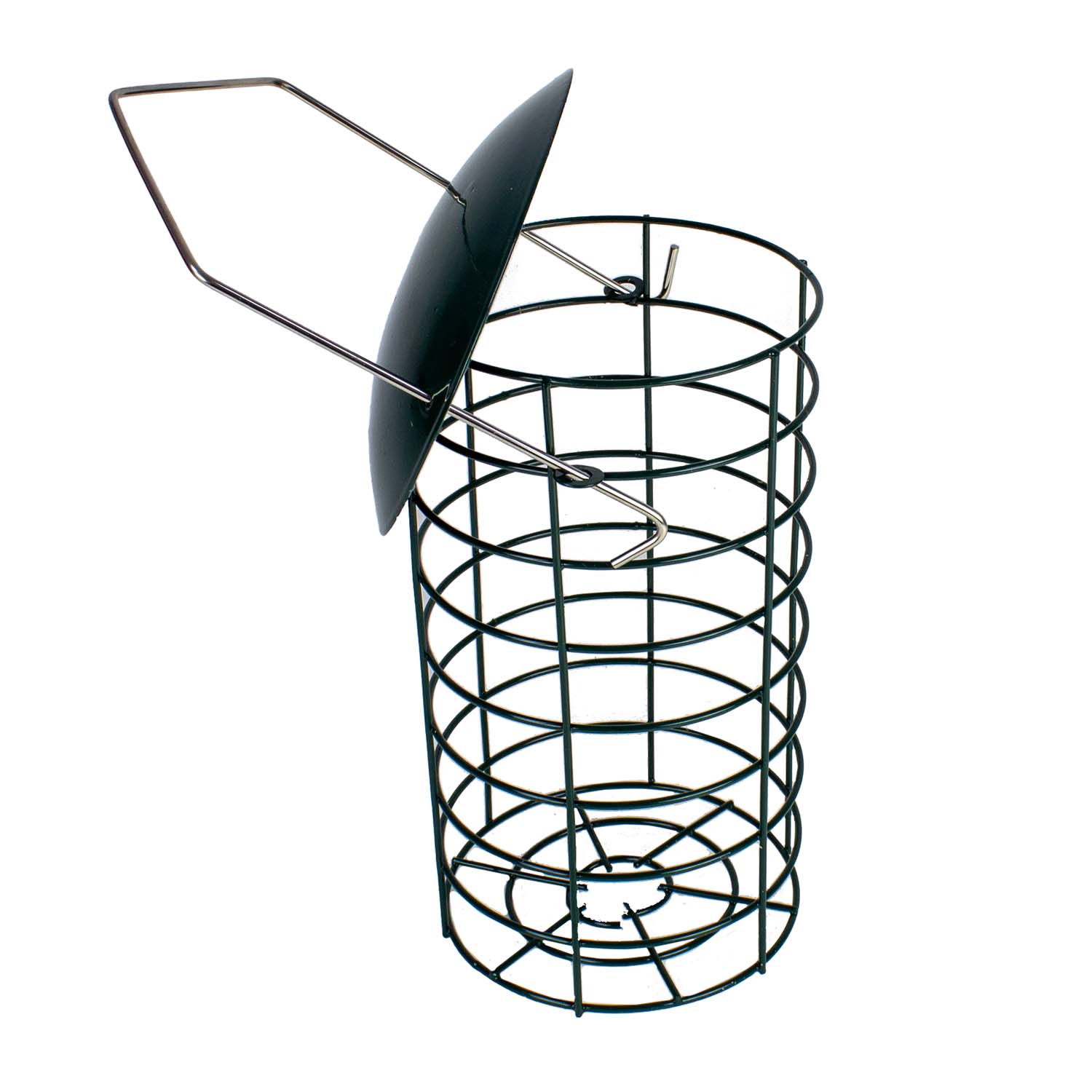 Eine völlig unkomplizierte Fütterung von Risenmeisenknödeln ohne Netz. Der Risenmeisenknödel-Halter ist ein praktischer, wetterfester Helfer aus robustem Metall, der sich überall leicht aufhängen lässt. Das Dach schützt die leckeren Meisenknödel vor Nässe - so bleibt das hochwertige Fettfutter länger frisch und schmackhaft für Ihre gefiederten Besucher.
