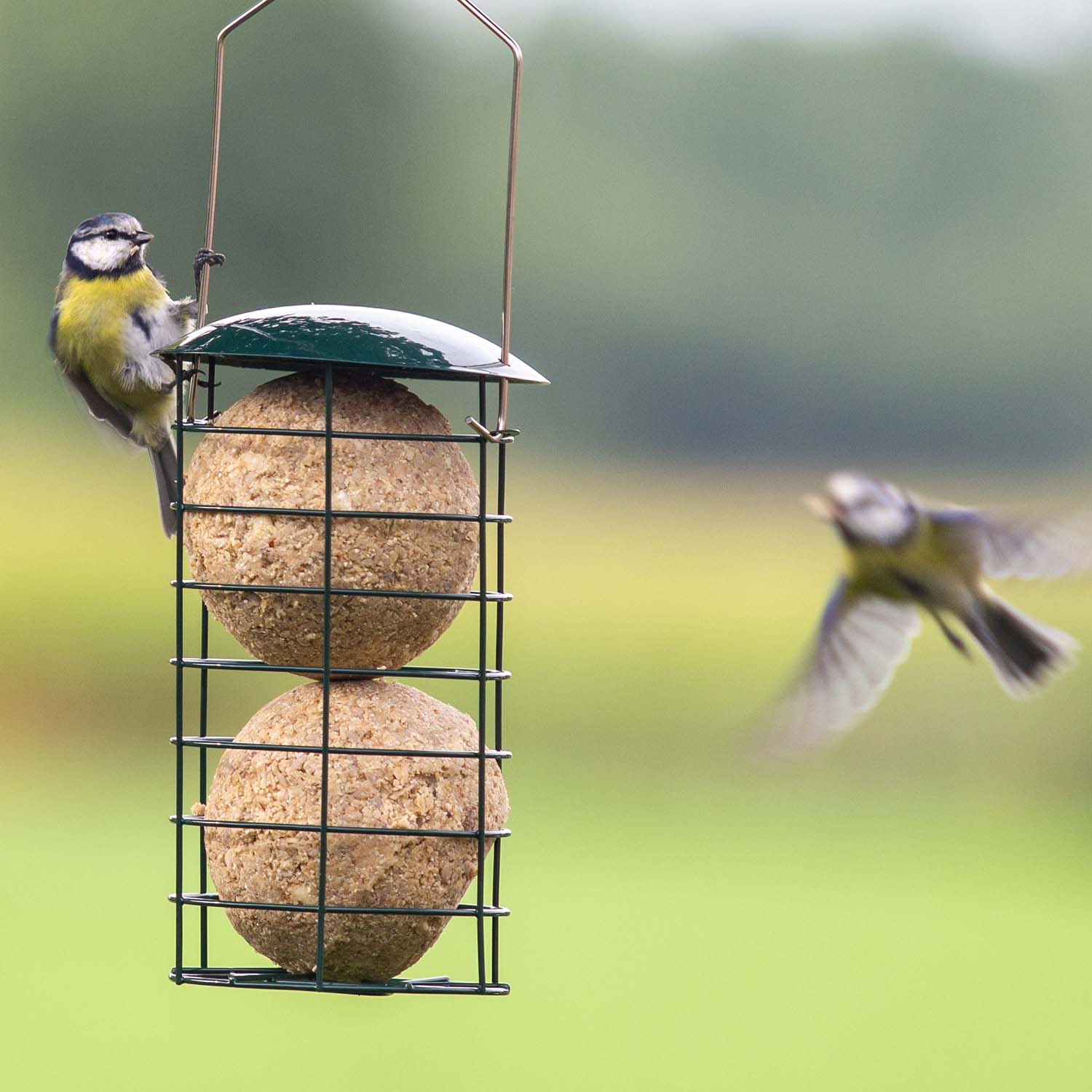 Mit seiner kompakten Bauart eignet sich der Futterspender ideal für Garten, Balkon oder Terrasenbereich. Er ist kinderleicht mit zwei Riesenmeisenknödeln befüllbar und die gefiederten Gäste haben einen langanhaltenden Futtervorrat.